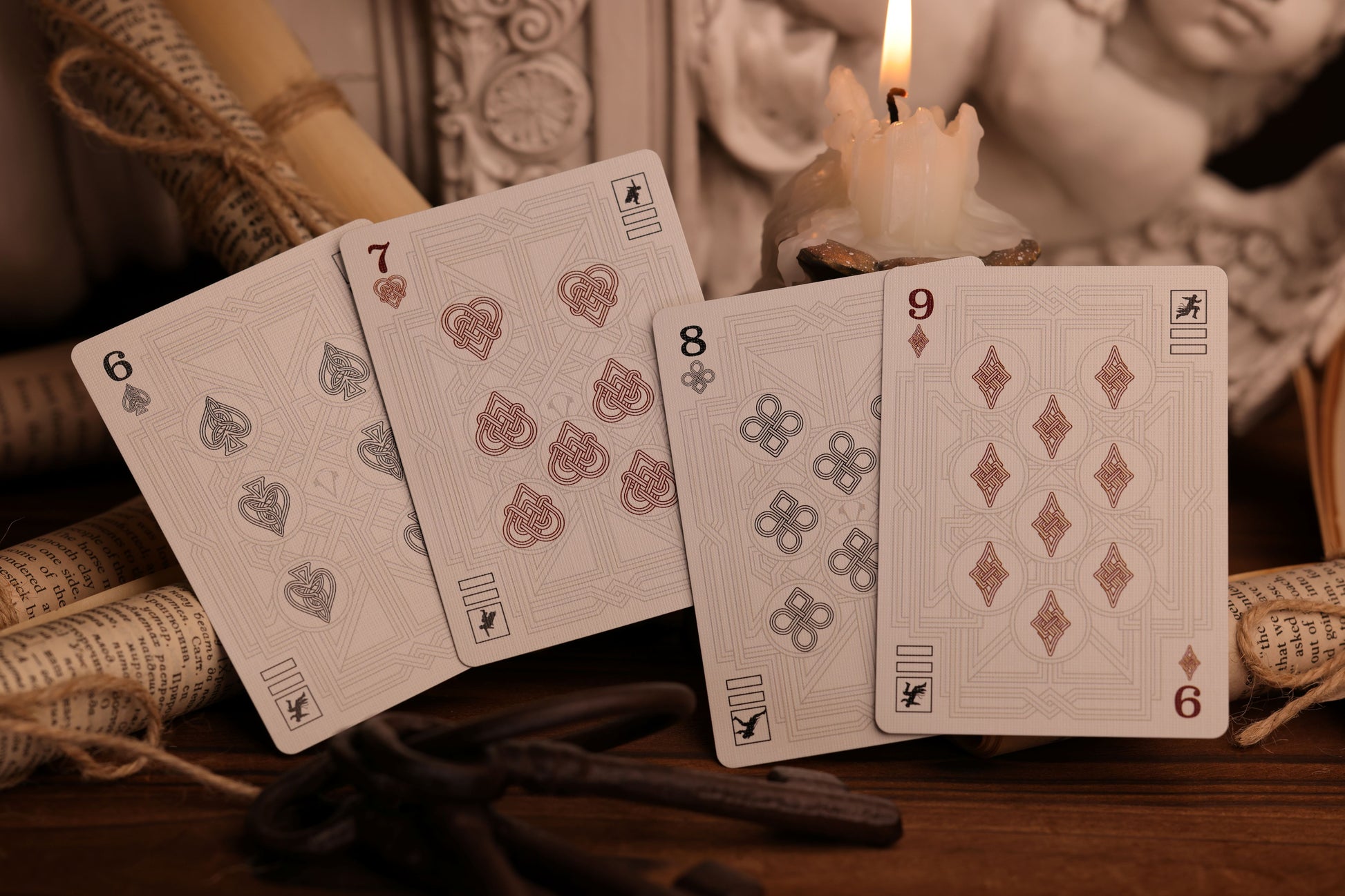 The number cards in the Assassin's Creed Playing Cards deck are not just placeholders; they are intricately designed elements that seamlessly blend with the overall theme of the deck. Each number card is adorned with custom pips that reflect key symbols and motifs from the Assassin's Creed universe. Whether it's the suits representing different factions or the intricate detailing that ties back to the historical settings of the games, every number card is a work of art in its own right. The attention to detail ensures that even the number cards contribute to the immersive experience of using these playing cards, making every hand dealt a journey through the world of Assassin's Creed.