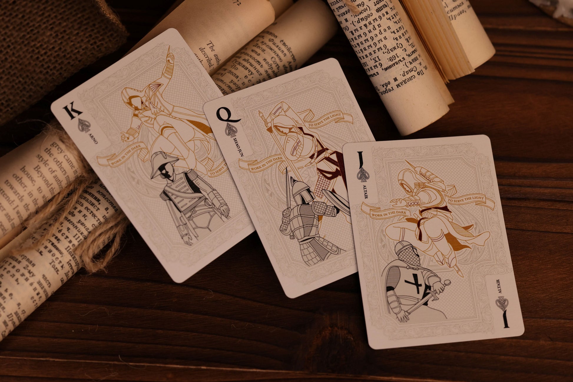 The Assassin's Creed Playing Cards are a tribute to the immersive universe of the renowned video game series that has enthralled gamers and history enthusiasts alike. Crafted with meticulous attention to detail, this deck captures the essence of stealth, strategy, and intrigue that define the Assassin's Creed franchise.