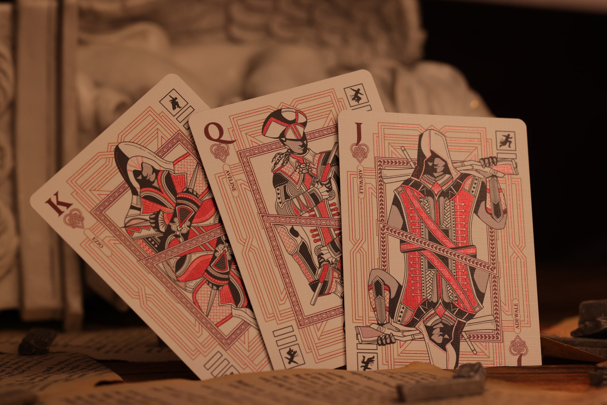 The court cards in the Assassin's Creed Playing Cards deck are a tribute to the legendary figures from the Assassin's Creed universe. Each card features meticulously illustrated characters from the series, such as iconic Assassins and formidable Templars. The intricate designs capture the essence of these characters, showcasing their unique personalities and roles within the Assassin's Creed saga.