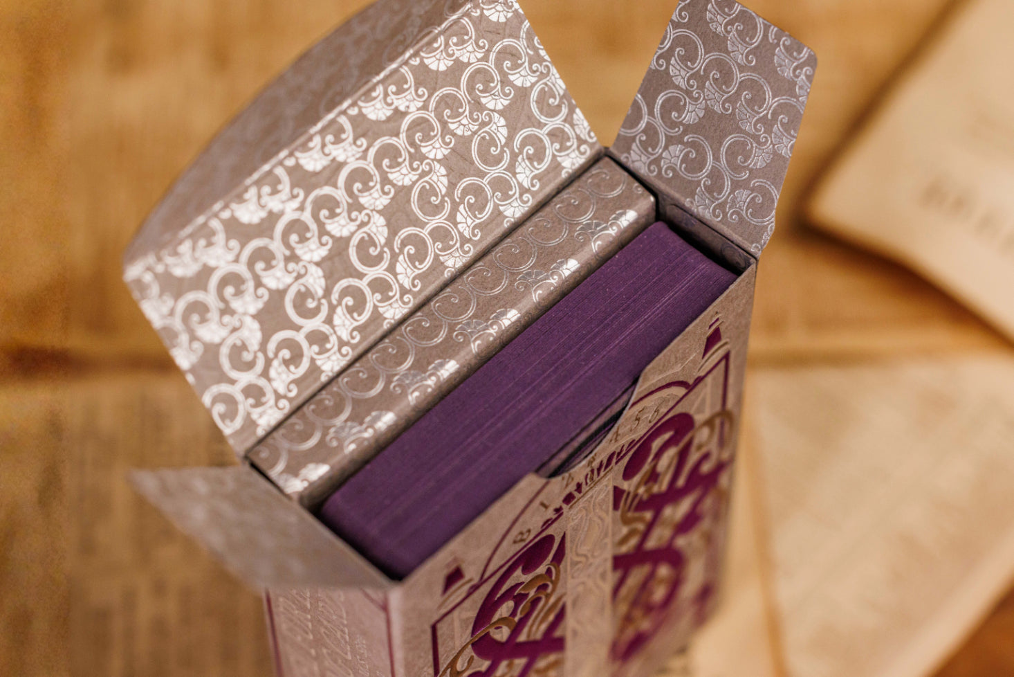 Designed for the discerning player, this deck features a 2-way card back. No matter how you hold your cards, the cold-foiled Jugendstil-inspired elevator doors remains perfectly aligned. An intricate capsule of forgotten art; a piece of the hotel's heart frozen in eternal flux.