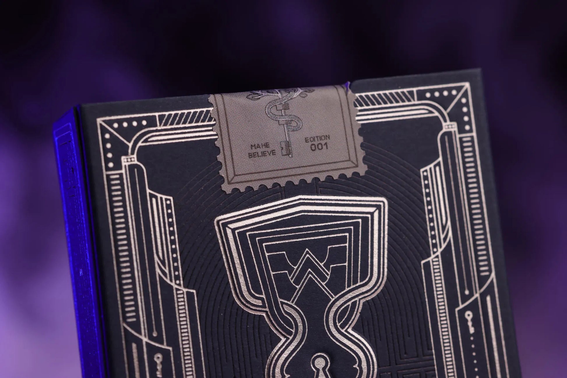Unlock the magic with Make Believe Playing Cards, crafted by renowned magician Patrick Kun. This unique deck draws inspiration from the timeless theme of keys and doors, beautifully showcased through its intricate design. The tuck box is a masterpiece in itself, featuring luxurious foiling and embossing, making it as captivating as the cards inside.