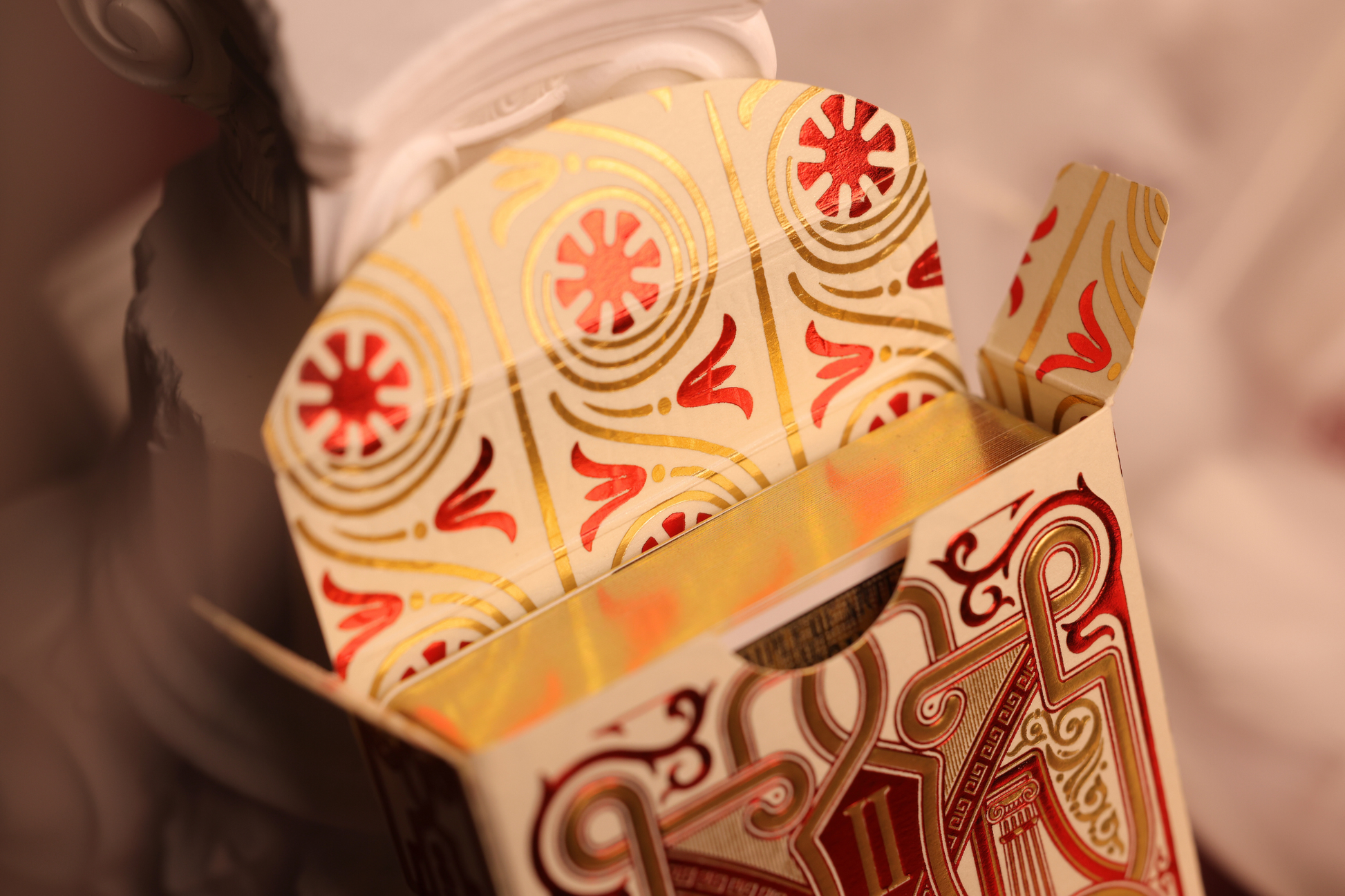 The Card Backs feature an interlinking motif that echoes the intricate and complex nature of the Temple of Artemis at Ephesus.