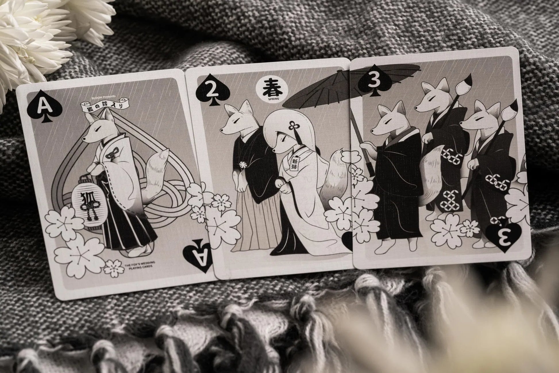 Not only that! Each suit within the deck represents a distinct season, capturing the essence of nature's transformation throughout the year. The integration of the four seasons not only adds depth and symbolism to the deck but also serves as a reminder of the perpetual cycles of life and nature. It reflects the harmony between the foxes' wedding celebration and the eternal rhythm of the changing seasons, creating a profound connection with the world around us.