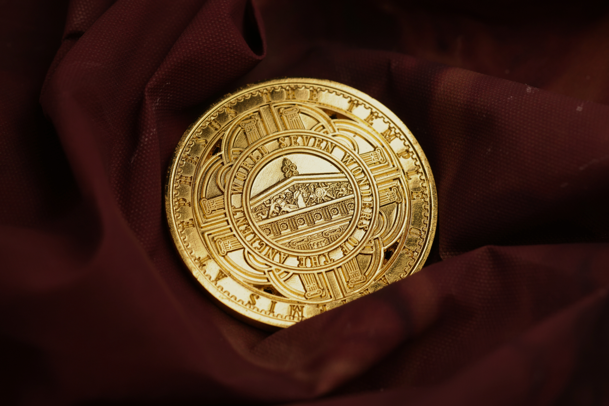 Intricate design made to mirror its accompanying playing card series. Featuring the design of the 55th face card of our imagining of the Temple of Artemis at Ephesus.