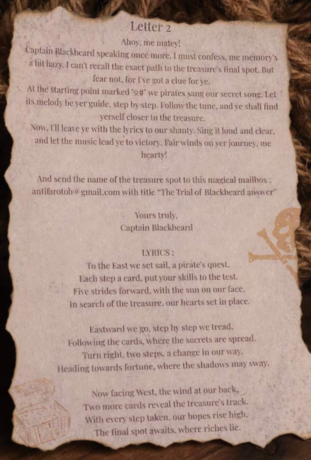 *To solve this puzzle, you will need a Anti-Faro UV Flashlight (You will find it in Related Product) and The Pirate's Letter